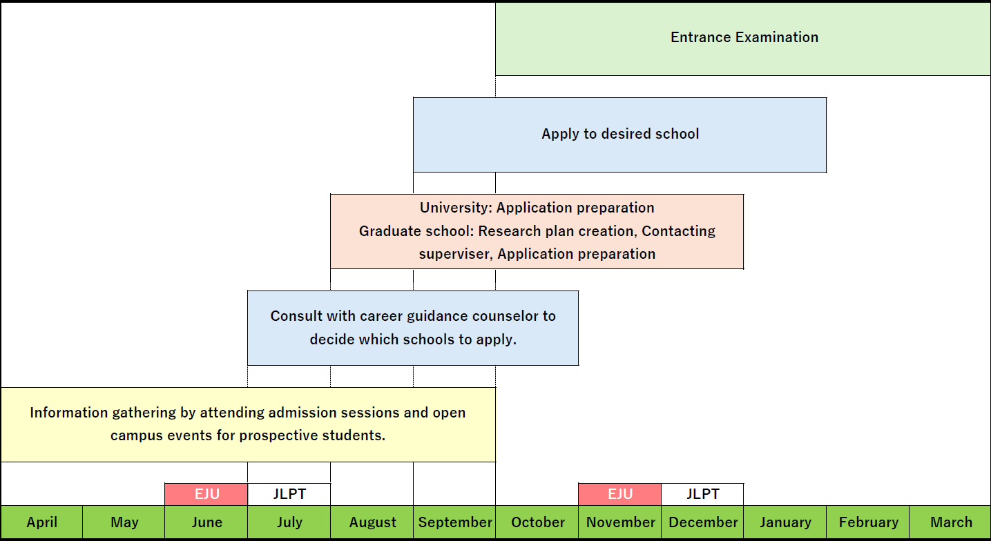※ Note: The schedule may vary significantly depending on the school you are applying to.